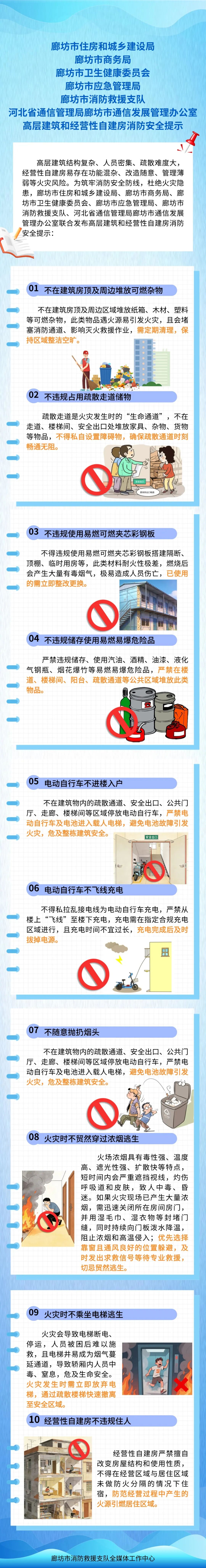 廊坊市六部门联合发布高层建筑和经营性自建房消防安全提示